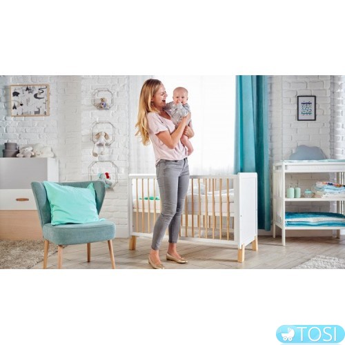 Классические деревянные перекладины с двух сторон являются отличным средством безопасности - ваш ребенок не выпадет из кроватки, а перекладины находятся на безопасном расстоянии друг от друга.