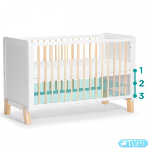 Три уровня регулировки днища облегчают укладку и вытаскивание ребенка из детской кроватки.