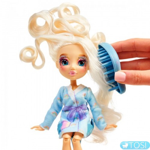Следуйте простым шагам: сделайте фото «ДО», уберите лишние аксессуары, закрепите волшебную маску на лице куколки, а затем снимите маску, получив безупречный макияж. Расчешите куколку. Чем дольше Вы расчесываете волосы, тем красивее они становятся. Наблюдайте за прекрасным перевоплощением Вашей куколки в настоящую стильную красотку. Сделайте модное окрашивание волос куколки двумя цветами в собственном стиле! Дополните образ куколки с помощью резинок и стразов (входят в набор), переоденьте её в модную одежду, создавайте уникальные причёски снова и снова!