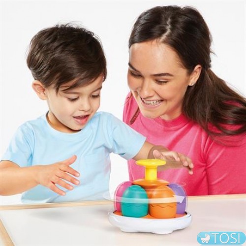 Это необычная юла в виде крутящегося инкубатора с 5 динозавриками в яйцах: тираннозавр, раптор, стегозавр, трицератопс и птеранодон.