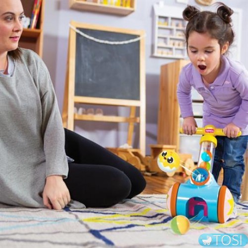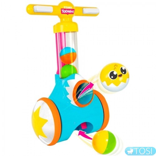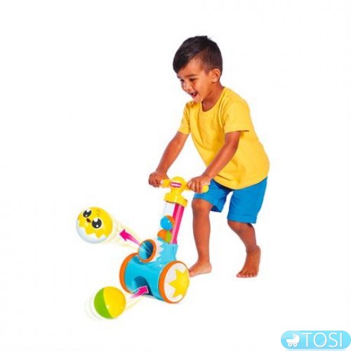Каталка Toomies с шариками научит малышей от 18 месяцев уверенно топать, собирая мячики.