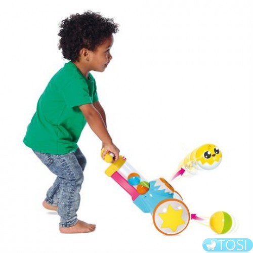 С такой каталкой ребенок не заскучает, ведь это так весело – стрелять шариками и собирать их обратно.