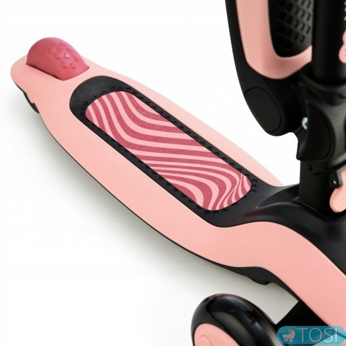 Этот великолепный велосипед и самокат в одном имеет 2 передних колеса с подсветкой и заднее колесо с тормозом. Еще более увлекательным для детей будет прогулка в темное время суток.