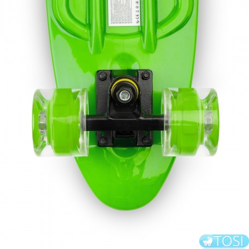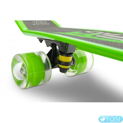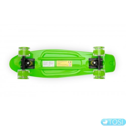 Скейтборд укрепляет мышцы и тренирует равновесие. Широкие колеса облегчают преодоление неровностей, а размещенные в них светодиоды делают катание вечером еще более увлекательным. Колода доски сделана из прочного пластика и покрыта специальной нескользящей наклейкой.