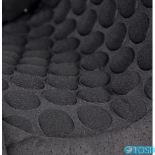 Сидіння виготовлено з матеріалу, який запобігає потовиділення і захищає дитину від вислизання з сидіння. Виготовлений з приємною на дотик і міцної алькантари, що нагадує замшу. Знімається для прання.