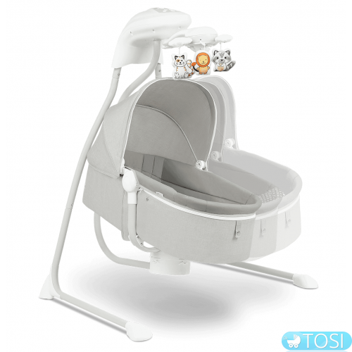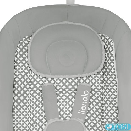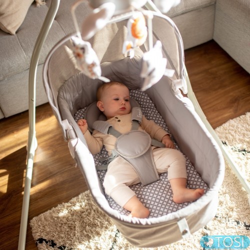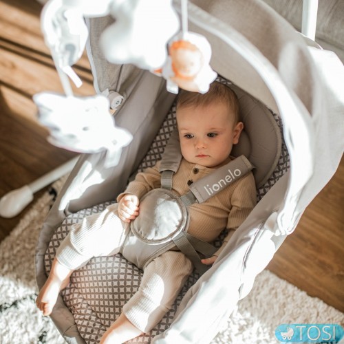 Гойдалка Lionelo Henny відтворює 12 мелодій і звуків природи, а також має 3 м’які підвіски у формі тварин для задоволення.