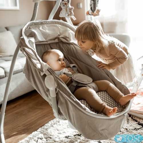 Гойдалки Lionelo Henny мають складний капюшон з москітною сіткою, яка захищає маленького користувача від сонця та захищає від комах.