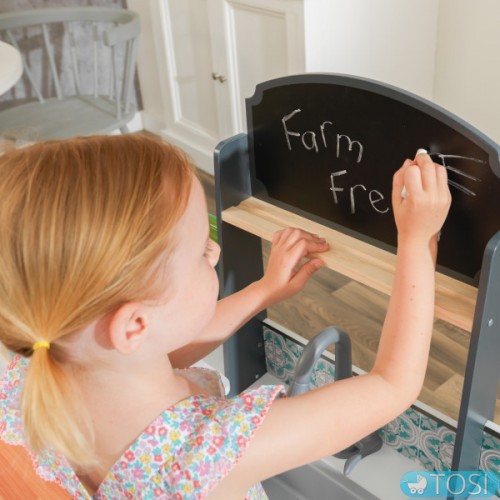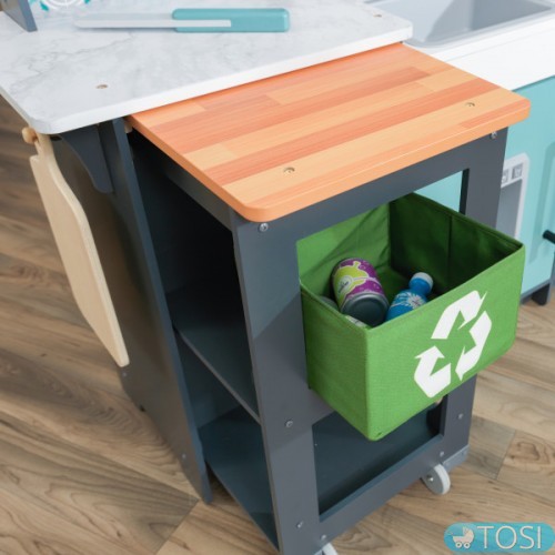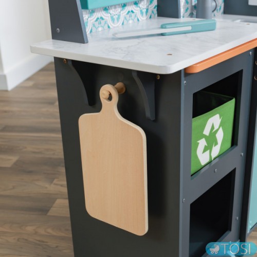 Ручки, які дійсно повертаються і клацають, і льодогенератор з кубиками льоду роблять процес приготування їжі більш реальним. Контейнер для утилізації відходів допомагає підкреслити важливість допомоги навколишньому середовищу. Крейдяна дошка дасть дітям можливість проявити творчість і додати індивідуальність цієї чарівної кухні, де обов'язково станеться диво.