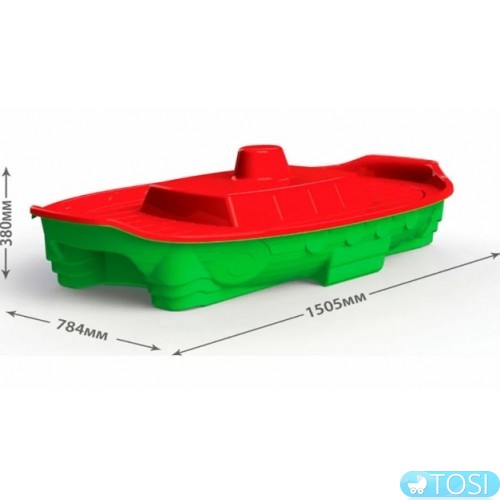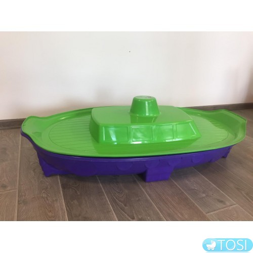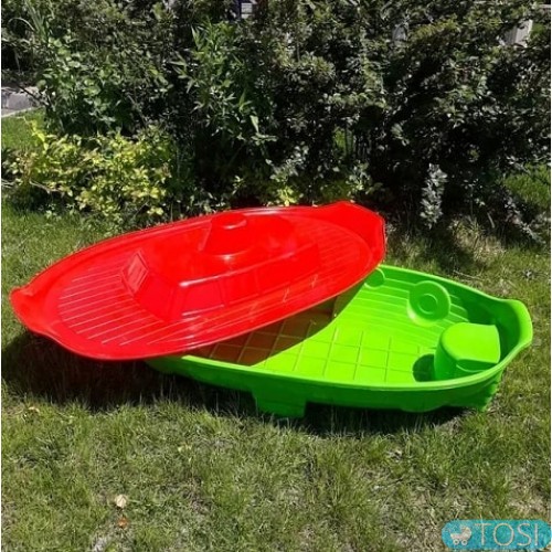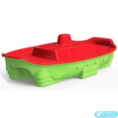 Пластикова пісочниця у вигляді корабля укомплектована кришкою для того, щоб зберегти пісок чистим. Пісочниця оснащена двома сидіннями, можна використовувати в якості басейну.