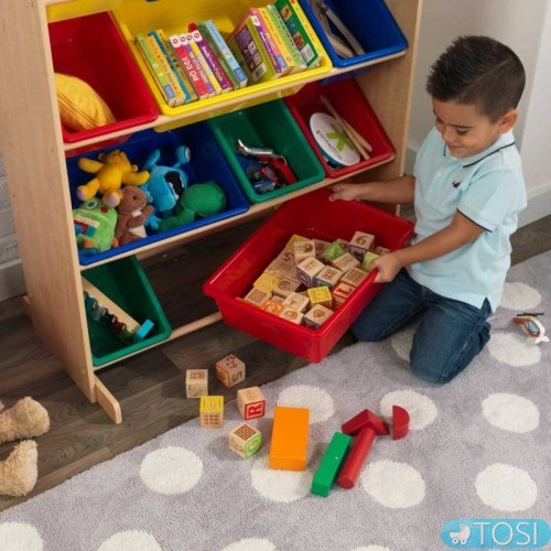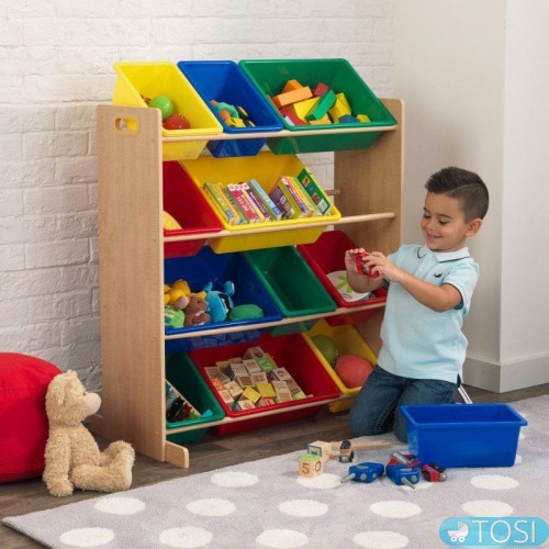 Етажерка для іграшок Kidkraft 16774 - тепер ще більше місця для зберігання іграшок. Завдяки 12 змінним і знімним пластиковим кошиках цей органайзер для іграшок пропонує досить місця для іграшок, шкільних і ремісничих приладдя, книг і всього, що люблять ваші діти. Міцна дерев'яна рама означає, що цей предмет буде служити роками.