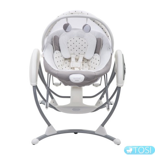 Качели электронные Graco Glider Elite - многофункциональные электрокачели со съемным сиденьем и солнцезащитным капюшоном с мягкими подвесными игрушками.