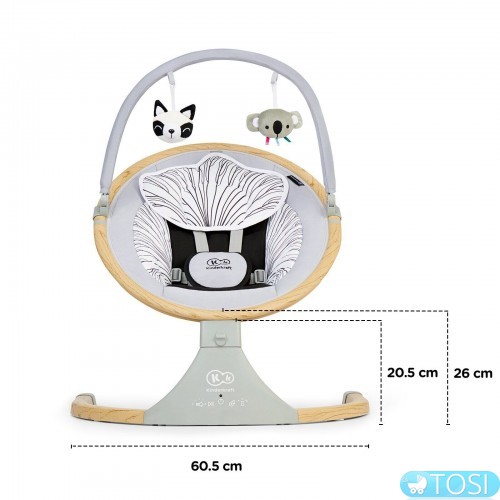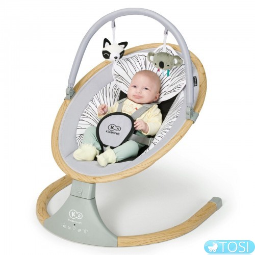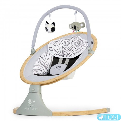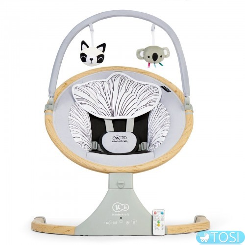 Крісло-гойдалка Kinderkraft Lumi - це електрична гойдалка-шезлонг, яка, на відміну від інших качалок, колише дитину в сторони, а не вперед і назад. Цей рух нагадує природні рухи дитини в животі матері - м'яко заколисує дитину до сну, як якщо б він був на руках у батька. Lumi - це в той же час багатофункціональний продукт - ви можете встановити його в статичному положенні і використовувати як шезлонг, але ви також можете зняти фіксацію і скористатися перевагами електричної гойдалки - нею можна управляти за допомогою пульта дистанційного керування. Гойдалка також виділяється на ринку наявністю технології Bluetooth, за допомогою якої батьки можуть включити дитині його улюблену музику з телефону. На панелі також є USB-порт, який дозволяє підключатися до шезлонги будь-який пристрій. Має 5 швидкостей гойдання і таймер, який можна встановити на 8, 15 і 30 хвилин (якщо таймер вимкнений, гойдалка працює весь час). Крім того, панель управління має аж 12 вбудованих приємних мелодій. З цим шезлонгом заспокоювати або заколисувати дитини буде ще простіше!