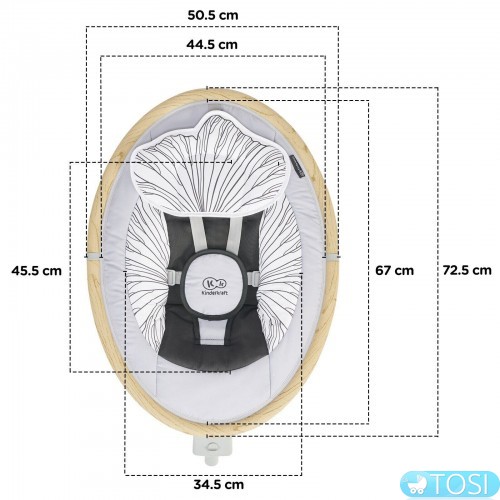 Гойдалка має регульовані 5-точкові ремені безпеки, які одночасно дбають про комфорт дитини. Широкий і м'який кроковий ремінь.