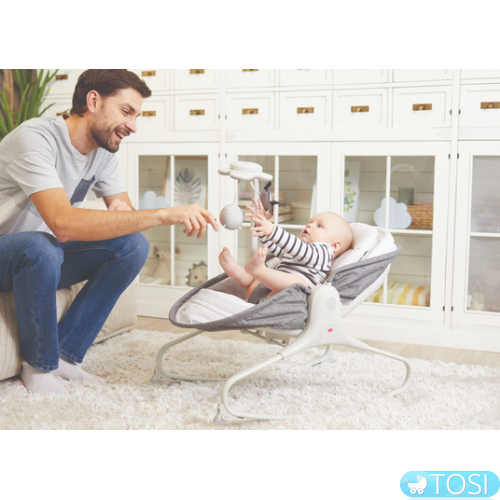 Ліжечко качалка Tiny love Мамині обійми 3 в 1 від гри до сну в один рух. Спинка фіксується в трьох положеннях: лежачи, напівлежачи, сидячи.