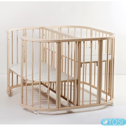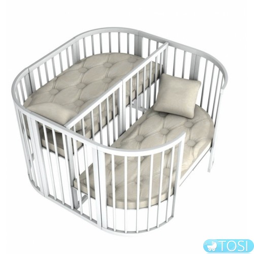 Для самих маленьких меблі тренсформіруется в ліжечко для двійні з перегородкою, яка входить в комплект, а також з можливістю регулювання дна на 3 - х рівнях незалежно один від одного.