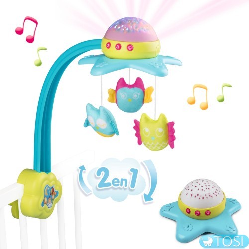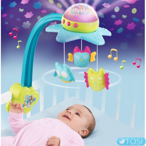 Милі совенята, приємні колискові, квіти та метелики, які проектуються на стелю та змінюють свій колір, допоможуть заспокоїти та втішити дитину.