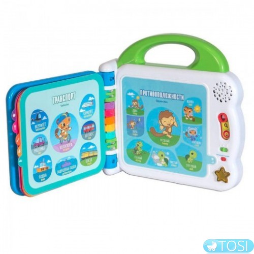 Формирует словарный запас (на русском и английском языках), развивает когнитивные способности и поощряет самостоятельное обучение малыша.