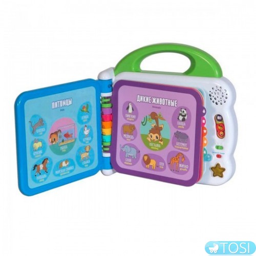 При прикосновении к картинкам на интерактивных страницах книжка воспроизводит слова, познавательные фразы и впечатляющие звуковые эффекты. Дети смогут разучить и две обучающие песни, нажав на кнопку со звездочкой.