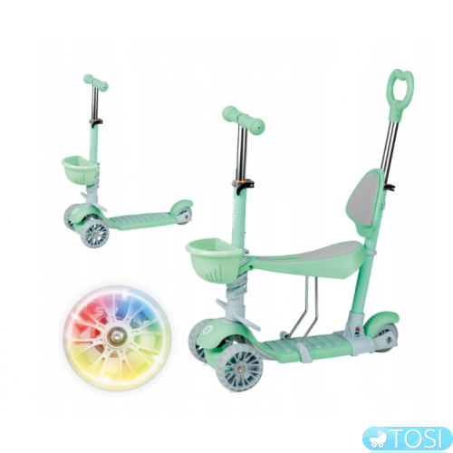 Все, що вам потрібно зробити, це зняти ручку для руху, відрегулювати рульове колесо і підняти сідло, і самокат перетвориться в надійний біговій велосипед. Дитина може поперемінно відштовхувати ноги сидячи, приводячи в рух круги, що світяться.