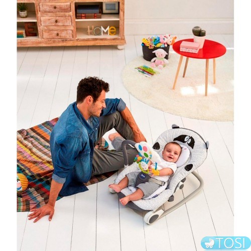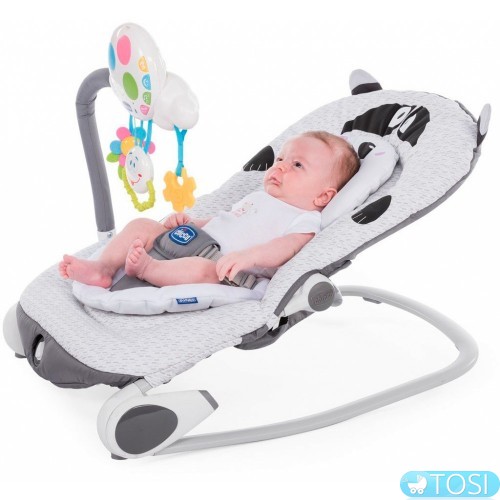 Спинка регулируется в 4-х различных положениях, чтобы адаптироваться к потребностям малыша. Шезлонг может быть легко установлен в функцию качалки.