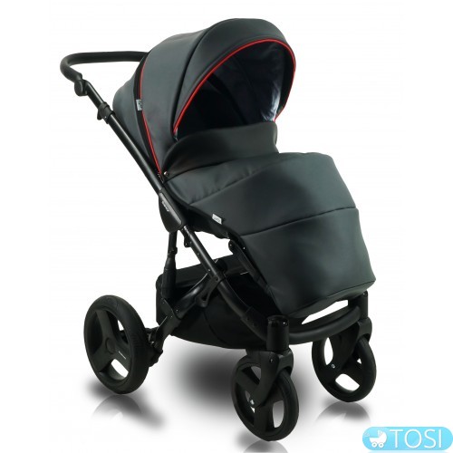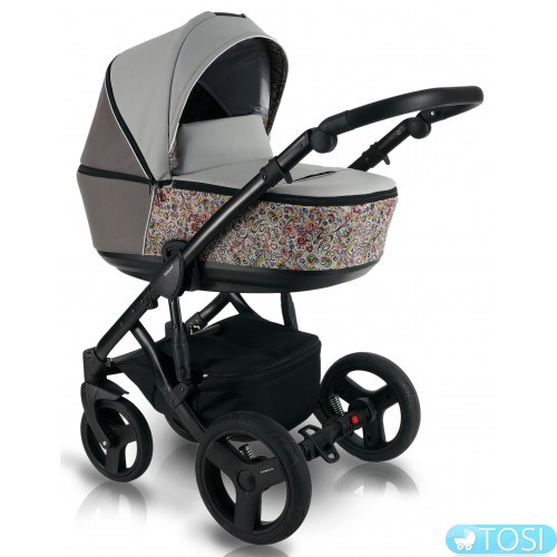 - стильный дизайн люльки сочетает в себе обивку из эко-кожи и яркий принт